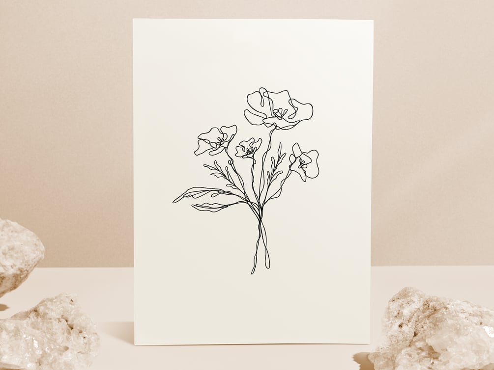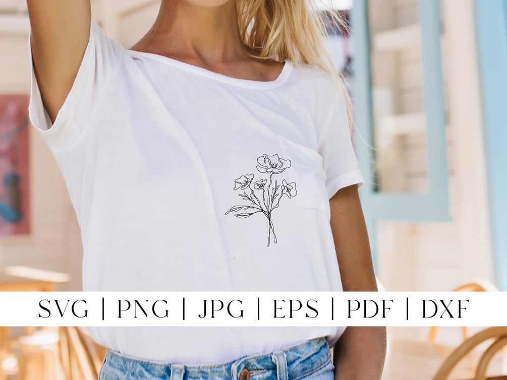 This original minimalist wildflower line art design includes a range of files for any and all uses. Apply this floral art to your digital projects, print projects, client projects, t-shirts, water bottles, mugs, picture frames, tote bags, packaging and more.